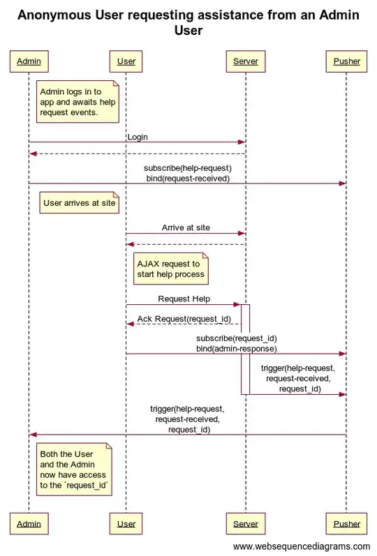 Anyways I have tried to use the session id but that didn't work as the user and admin are not on the same browser. I thought about somehow sending the session id with the pusher notification message but I similar did know how because the admin is on a /admin/events page while the user is on the home page.