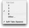 From that point on, TextMate should default to Soft tabs, though for at least one or two languages, I had to specify the number of tabs. After I did that, it seemed to stick for everything I did.