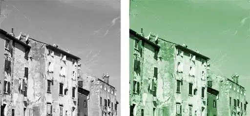 The left image represents what we have and the right what i need to have. Now in program i have some function where in input is R, G and B value of source image and and RGB value color which should be used as coloring value. And i can't decide how can i increase or decrease source RGB using color RGB to have the right color pallette.