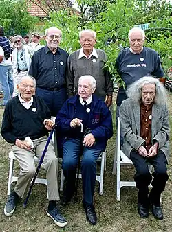 After finishing four-grade elementary school, Göncz began his secondary studies at the Werbőczy Secondary Grammar School in 1932. There he involved himself in the activity of the Hungarian Scout Association. Scouting opened Göncz's eyes to social issues, particularly with regard to the problems of the poor peasantry, as he said in a later interview.[5] Göncz joined the Pál Teleki Work Group which was formed in 1936 by Pál Teleki, an influential interwar politician and Prime Minister of Hungary, also Hungary's Chief Scout. The work group was an important seminary and forum for the university students. The programme emphasized the relevance of the nation, family and community and the good knowledge of Hungarian history and geography. In the next years, key figures from the Independent Smallholders' Party, e.g. Endre Bajcsy-Zsilinszky, had joined the work group.[6] His political view was also influenced by the népi-nemzeti ("rural-national") ideological movement since the 1930s. The group of the so-called "folk writers" (Hungarian: népi írók), including Zsigmond Móricz or János Kodolányi, expressed critique of capitalism and emphasis on peasant society and land reform. Göncz also stressed he represented the same political view as liberal political theorist István Bibó.[7] In December 1938, Göncz, in a short essay in Magyar Cserkész ("Hungarian Scout"), welcomed the Hungarians' entry into Komárno in accordance with the First Vienna Award.[8]