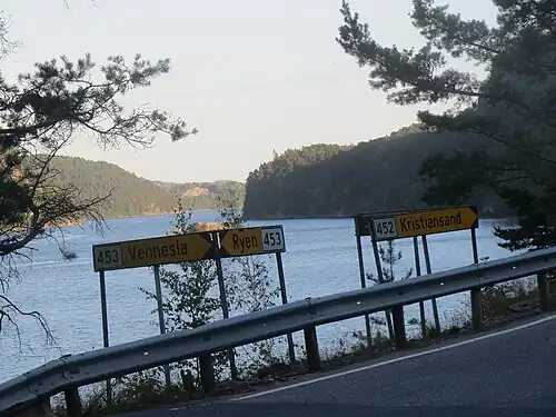 Ålefjær is a village and district in the municipality of Kristiansand in Agder county, Norway. The village and district lies in the far northern part of the municipality within the borough of Lund. The population of the district in 2014 was 410. Ålefjær borders the district of Tveit to the southeast, the district of Justvik to the southwest, the municipality of Vennesla to the northwest, and the municipality of Birkenes to the northeast. The village of Ålefjær is situated at the northern end of the Ålefjærfjorden, a branch off the Topdalsfjorden. The district is a very rural area, although it is only about 5 kilometres (3.1 mi) southeast of the large village of Vennesla and about 10 kilometres (6.2 mi) north of the city of Kristiansand.