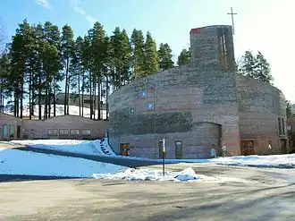 Åmot Church (Åmot kirke) was consecrated on May 16, 1996. It replaced a chapel, dating from 1906, which was destroyed by fire. Åmot Church belongs to the Modum parish in Eiker deanery. The church was constructed of brick and seats 220 in the nave. [6]