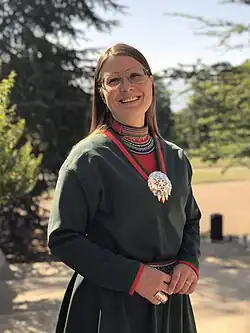She grew up in a Sámi family that cares for reindeer. She has studied at the University of Umeå and holds a master's degree in human resource management.[2] Larsson Blind joined the Saami Council in 2008 as a representative of Ruoŧa Sámiid Riikkasearvi (SSR, the National Union of the Swedish Sámi People). In 2011, she was elected vice president of the council and in February 2017 was elected president.[3] Her term as president ended in February 2021 and she was again elected vice president. In her time with the Saami Council, Larsson Blind also served from 2011 to 2015, on the board of the Arctic Council Indigenous Peoples Secretariat.