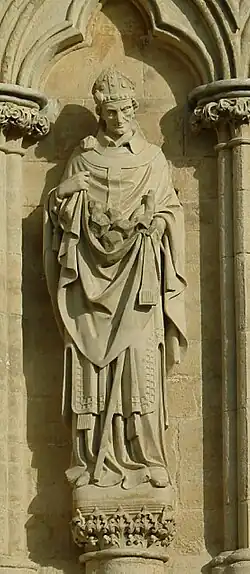 Artistic representations of Ælfheah often depict him holding a pile of stones in his chasuble, a reference to his martyrdom.[43]