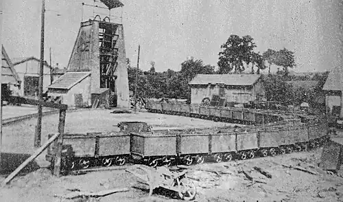 The Sainte-Barbe shaft was sunk in 1832 to a depth of 208.7 meters and closed a century later, in 1932.[14] In the 1880s, the Sainte-Barbe shaft became the general drainage shaft for the basin and received a new steam engine similar to that of La Garenne shaft.[10]