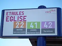 - Route 42 starts at Étaules passing all the stops in the commune and going to La Tremblade, Ronce-les-Bains, and Marennes;