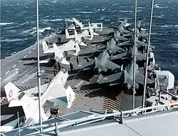 During December 1961, the French Navy took delivery of their first Étendards. The following year, the type was deployed for the first time aboard both of the service's newly built Clemenceau-class aircraft carriers, the Clemenceau and Foch.[1][5] The Étendard IVM was in French Navy service for several decades, even following the development of the more capable Super Étendard. The type was gradually relegated to secondary missions in favour of the Super Étendard; as such, it was phased out from active combat roles during 1987.[3]