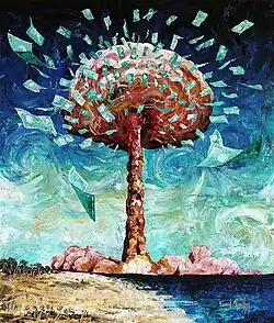 Although usually representing scenes of traditional Polynesian life, Chaussoy also takes positions on current issues and uses his painting to convey messages. In 2018, he painted the satirical work entitled “Moruru roa”, a play on words between “Moruroa” (an atoll used by the French for nuclear testing) and “Mauruuru roa” (“Thank you very much” in Reo Tahiti). He is also committed to the environment by denouncing maritime pollution with his series of paintings “Coming from the sea”, “Paradise on borrowed time” where he illustrates the threat of rising water levels and his participation in World Art Day for the exhibition “Water Peoples”.[9]