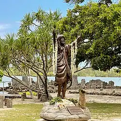 In 2021 with the help and financial support of his friend Heiarii Girard, Chaussoy created a statue of the famous Polynesian musician Bobby Holcomb in bronze.[11] The monumental 1.5 scale statue and its base measure three and a half meters and weigh three and a half tonnes. It was inaugurated on the island of Huahine where Bobby resided then was exhibited on the island of Raiatea where the singer regularly performed.[12] It is currently exhibited on Place To'ata in Papeete, on the island of Tahiti.