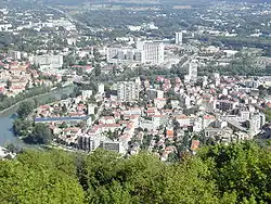 Île Verte is a neighborhood in Grenoble, France, located in a bend in the river Isère. It is relatively independent from downtown. The district is one of the most heavily populated in the town, due primarily to the large apartments (three large towers, as well as an ?S-shaped apartment complex). The area is mostly residential, but the Police Headquarters (Hotel de Police) is also located here.