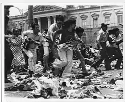During the ceremony, smoke bombs exploded on the streets near the cathedral and subsequently, there were rifle shots that came from surrounding buildings, including the National Palace. Many people were killed by gunfire and in the stampede of people running away from the explosions and gunfire. Official sources reported 31 overall casualties, while journalists claimed that between 30 and 50 died.[64] Some witnesses claimed it was government security forces who threw bombs into the crowd, and army sharpshooters, dressed as civilians, who fired into the chaos from the balcony or roof of the National Palace. However, there are contradictory accounts about the course of the events and one historian, Roberto Morozzo della Rocca, stated that "probably, one will never know the truth about the interrupted funeral."[64]