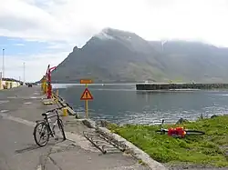 Óshyrna (Icelandic pronunciation: [ˈousˌhɪ(r)tna] ⓘ) is a mountain in the Westfjords in Iceland. It is the outermost part of the mountain slope between Ísafjörður and Bolungarvík. The old road to Bolungarvík lies between Óshyrna and the ocean. The Óshlíð [ˈousˌl̥iːθ] road is one of Iceland's most dangerous roads because of frequent avalanches and rock falls. The road has four emergency shelters along its route.