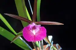 × Brassocattleya or Brasso-cattleya, abbreviated Bc. in the horticultural trade,[1] is an intergeneric orchid hybrid derived from the genera Brassavola and Cattleya.[2] Brassocattleya contains both hybrids that appear in nature (in Brazil, see the species list below), as well as hybrids from cultivation (which are referred to by their grex names).