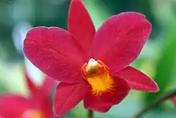 × Hawkinsara, abbreviated Hknsa. in the horticultural trade,[1] is an intergeneric hybrid of orchids, with parent genera Broughtonia, Cattleya, Laelia and Sophronitis.