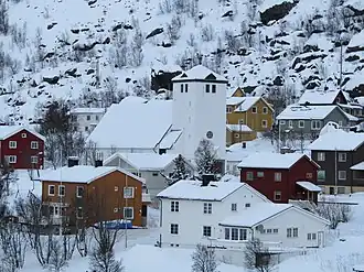 Øksfjord Church (Norwegian: Øksfjord kirke) is a parish church of the Church of Norway in Loppa Municipality in Finnmark county, Norway. It is located in the village of Øksfjord. It is main church for the Loppa parish which is part of the Alta prosti (deanery) in the Diocese of Nord-Hålogaland. The stone church was built in a long church style in 1954 using plans drawn up by the architect Hans Magnus. The church seats about 210 people.[1][2]