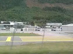 Ownership of the airport passed to the Civil Aviation Administration (later renamed Avinor) on 1 January 1997.[17] The runway was extended in both directions in the early 2000s.[15] Airport security was introduced on 1 January 2005.[18] Hovden saw 51,000 passengers in 2008. With the opening of the Eiksund Tunnel that year Ulstein, Herøy and Hareid were all given a fixed link to the airport. This gave a large increase in use of the airport, hitting 100,000 passengers in 2011. The 2012 opening of the Kviv Tunnel brought the airport even closer to Nordfjord and Hovden started capturing patronage from Sandane Airport, Anda. This has been sufficient for Avinor to consider the closing of Anda.[19] Combined these two road projects have tripled the airport's catchment area.[20]