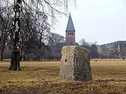 On the northeast side of the street stands a stone popularly known as the Struense Stone, referring to Johann Friedrich Struensee who was executed on the Eastern Common in 1772. The stone has, however, nothing to do with Struense being a quarter milestone installed in 1698 in connection with Ole Rømer's survey of Denmark. It indicated there was a quarter of a mile (1.75 km) to the Eastern City Gate.[4]
