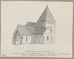 Østofte Church, located in the village of Nørreballe on the Danish island of Lolland, was built in the 14th century. The Romanesque apse, chancel and nave formed the original building while the tower and porch were added in the Late-Gothic period and the north wing was completed in 1656.[1]