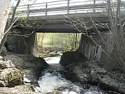 The river Øverlandselva runs past Øverland farm, whence the river got its name.[1] A bridge over it was mentioned as early as 1594 by Jens Nilssøn,[2] and it is considered a part of the so-called Pilgrim's Route.[3] The river continues south through Haslum before turning southwest near Løkeberg, ultimately emptying into the lake Engervannet at Blommenholm. The southernmost section has formerly been called Løkebergelva.[4]