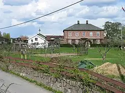 In 1826 the farm was registered as having 7 horses, 28 cattle and 32 sheep. In 1939 this number had risen to 9 horses and 69 cattle; sheep had been discontinued but ducks and chickens had been added. The farm is also used for fruit cultivation. In older times limestone extraction and burning was conducted northeast of the farm, at Steinskogen.[5] Limestone burning is an old characteristic of Bærum municipality, and a lime kiln is the inspiration for its coat of arms.[7] Lime from Øverland was used at Akershus Fortress in 1629 and 1661.[8] Around the same time, the farm also operated a nearby sawmill.[9]