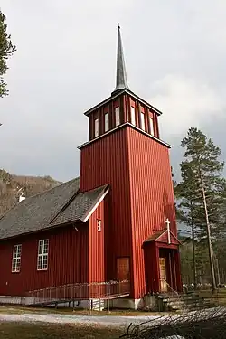 Øvre Saltdal Church (Norwegian: Øvre Saltdal kirke) is a parish church of the Church of Norway in Saltdal Municipality in Nordland county, Norway. It is located in the village of Røkland. It is one of two churches for the Saltdal parish which is part of the Salten prosti (deanery) in the Diocese of Sør-Hålogaland. The red, wooden church was built in a long church style in 1938 using plans drawn up by the architect Andreas W. Nygaard. The church seats about 200 people.[1][2]