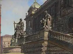 Čechie receiving savings of the people, 1861. Statue at the former Bohemian Saving Bank, currently the seat of the Czech Academy of Sciences