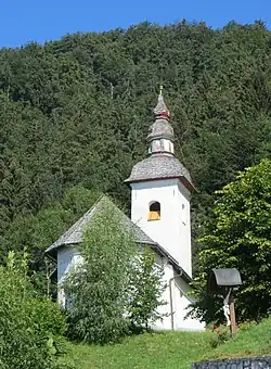 The local church is dedicated to Saint Brice (Slovene: sveti Brikcij). It is a late Gothic structure with a five-sided apse and a square nave. Although it was extended in the late 18th century, early 16th-century frescos, some painted by Jernej of Loka, survive in the sanctuary. The main altar dates to the late 17th century with 16th-century statues.[6]