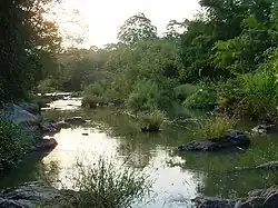 The name comes from the Mnong (a Mon-Khmer language) word dak Lak (/daːk laːk/, which sounds similar to "Đác Lác" in Vietnamese), literally "Lak Lake",[5] referring to the largest freshwater lake in the province. The word dak means "water" or "lake", and is a cognate of the Vietnamese nước/nác ("water").[5] The official spelling in Vietnamese is Đắk Lắk, despite the fact that the original Mnong word contains long "a" sounds rather than short "ă" sounds. Some other spellings such as Dak Lak, Daklak, Đăk Lăk, Đắc Lắc, and Darlac (in older French texts),[6] among others,[7] have also been used. The Daklak Guest House, for example, inconsistently uses Daklak and Đắk Lắk.[8] Linguist Nguyễn Minh Hoạt has argued that a sensible spelling would be Dak Lăk, based on the ground that lak means dermatophytosis in Rade (an unrelated language of the Austronesian family), whilst also citing the Mnong origin as the basis for the dak part of the spelling.[7] The derivative Đắk Nông province appears to have been named after this province, by replacing Lắk with Nông for "Mnong".