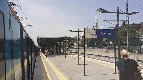 İçmeler railway station (Turkish: İçmeler istasyonu) is a railway station in Tuzla, Istanbul. The station was originally opened in 1954 by the Turkish State Railways, as İçme railway station and was a stop on the Haydarpaşa suburban commuter rail line.[1] The original station consisted of two side platforms with two tracks. İçme station was also serviced by the popular Adapazarı Express regional rail service from Istanbul to Adapazarı.[2]