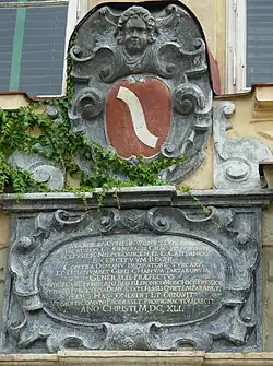 From 1942 onwards the German occupiers began transportation and murder of the Jewish community; very few of the community survived.[17] The Germans executed several Poles in the town for rescuing Jews, while at least one Polish man managed to escape and survive.[18] There is also a well-known case where a Jewish family from Łańcut was hidden from the Germans by the Polish Ulma family in the nearby village of Markowa.[19] In 1944 the Germans discovered the hideout and murdered the Polish family and two hidden Jewish families, 16 people in total, including children.[19] The town's architecture avoided significant damage during the war.[3]