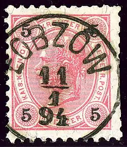 - ^ Klein, Wilhelm (1967) Die postalischen Abstempelungen auf den österreichischen Postwertzeichen-Ausgaben 1867, 1883 und 1890