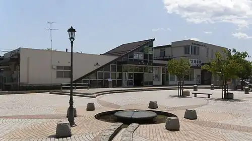 The station has a single side platform and an island platform connected to the station building by a footbridge. The station has a Midori no Madoguchi staffed ticket office.