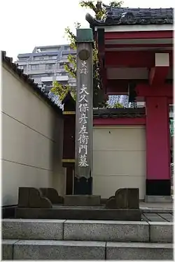 Ōkubo Tadataka (大久保 忠教) or Ōkubo Hikozaemon (大久保 彦左衛門; Japanese pronunciation: [oː.kɯ.bo (|) çi̥.ko.(d)za(ꜜ).e.moɴ],[1] 1560 – 2 April 1639) was a Japanese warrior in the Sengoku and Edo periods. He was the eighth son of Ōkubo Tadakazu, a vassal of the Tokugawa clan. Tadataka wrote the Mikawa Monogatari (三河物語), a work he wrote for his descendants, telling the way a warrior should live, mixed with a chronicle of the accomplishments of the Tokugawa and Ōkubo clans.