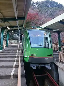 The Ōyama Cable Car (大山ケーブルカー, Ōyama Kēburukā), officially the Ōyama Cable Line (大山鋼索線, Ōyama Kōsaku-sen), is a Japanese funicular line in Isehara, Kanagawa. This is the only line Ōyama Kankō Dentetsu (大山観光電鉄; "Ōyama Sightseeing Electric Railway") operates. The company belongs to Odakyū Group. The line opened in 1931, as a route to Ōyama Afuri Shrine on Mount Ōyama. The line is now also used for hiking.