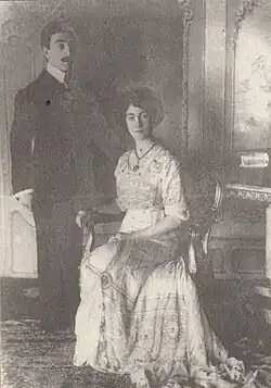 His fourth wife was Hatice Şadiye Hanım.[23] She was born on 1 April 1898 in Kabataş, Istanbul.[16] She was the daughter of Çürüksulu Süleyman Bahri Pasha Tavdgiridze and Hatice Hanım.[24] They married on 27 March 1919 in the Beşiktaş Palace.[16] In 1920, she gave birth to Şehzade Burhaneddin Cem, followed by Şehzade Bayezid Osman in 1924.[25] They divorced in 1930.[16] Following her divorce, Şadiye met American businessman William Thallon Daus in Paris. They married in 1932, and had two sons, Rudolph Halouk and Bahri Lawrence.[26] She died on 9 August 1986.[16]