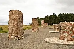 Šķēde is also known for the Nazi Liepāja massacres in 1941. The main perpetrators were detachments of the Einsatzgruppen, the Sicherheitsdienst (or SD), the Ordnungspolizei and Latvian auxiliary police and militia forces. Wehrmacht and German naval forces also participated in the shootings. In addition to Jewish men, women and children (c.5,000), the Germans and their Latvian collaborators also killed Roma (c.100), communists, the mentally ill (c. 30) and so-called "hostages". In memory of this event, a memorial stone has been installed in the dunes near the settlement.