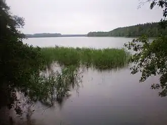 Šakarvai Lake is in the Ignalina district of eastern Lithuania, Aukštaitija National Park, about 2.5 kilometres (1.6 mi) southwest of Palūšė village. The lake connects with Lake Lūšiai and Lake Žeimenys.