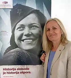 ![]() Galić posing next to the Kozarčanka photograph | |