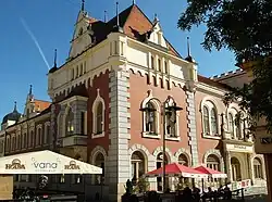 In the second half of the 19th century and first half of the 20th century, many architectural gems were created in the town, first especially in the Neoclassical and Neorenaissance styles, later in the Functionalist style. Notable is the town hall which is a landmark of the town centre. It was built in the Saxon Neo-Renaissance style in 1909–1911, and replaced an old Gothic town hall first mentioned in 1475.[4]