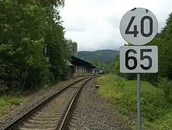 The Šumperk–Krnov railway line links Šumperk to Krnov through mountains of Eastern Sudetes with highest point in Ramzovské sedlo pass. The length is 123 kilometres (76 mi), the track gauge 1435 mm, the highest track gradient is 33‰, the maximum speed is 80 kilometres per hour (50 mph).