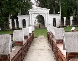 A Soviet soldier was buried in front of the villa in the parterre and a monument was erected. The old wooden manor house was demolished c. 1952.[8] Though only the foundations are left of Švėkšna Manor, 'Villa Genowefa' still stands.