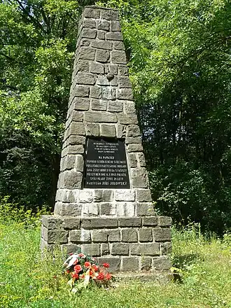 Monuments along the hiking trail from Brankovice to Zdounky commemorate the work of the Olga Partisan Division in these woods, part of the Czech resistance to Nazi occupation in the 1940s.