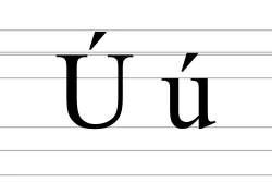 Ú, ú (u-acute) is a Latin letter used in the Czech, Dobrujan Tatar, Faroese, Hungarian, Icelandic, Karakalpak and Slovak writing systems. This letter also appears in Dutch, Frisian, Irish, Occitan, Catalan, Pinyin, Portuguese, Spanish, Italian, Galician, and Vietnamese as a variant of the letter "U".[1]