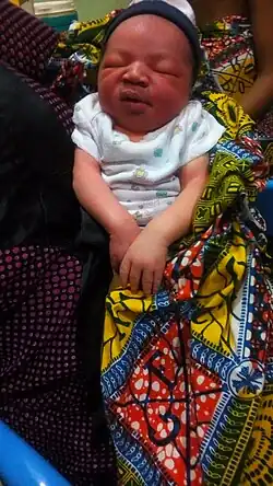 Ọmụgwọ // ⓘ is an Igbo word of the South-Eastern Nigeria that describes the process of which a family member takes care of a new mother and her baby, in a short period of time after childbirth. Ọmụgwọ can be done during the first 40 days of a child's life or more.[1] In most cases, it is the child's maternal grandmother or maternal grand step-mother that would stay during the period of ọmụgwọ. In their absence, the paternal grandmother will replace the maternal grandmother or maternal grand step-mother.[2] The importance of this practice is that it helps the new mother learn and be guided on the process of childcare through the experience of her mother or mother-in-law, it guides them on becoming a mother, by providing knowledge and support.[3][4]