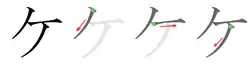 , (in hiragana) or , (in katakana) is one of the Japanese kana, each of which represents one mora. Both represent [ke]. The shape of these kana come from the kanji 計 and 介, respectively.