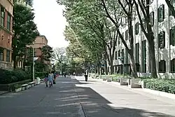 Sophia's main campus at Yotsuya is urban, consisting of roughly 25 large, modern buildings in the center of Tokyo. The majority of Sophia's 10,000 undergraduate students spend nearly all their time here. The faculties of Theology, Humanities, Law, Foreign Studies, Economics, Liberal Arts, and Science and Technology have their home here, as do the main library, cafeteria, gymnasium, chapel, bookstore, and offices. In April 2006, the Faculty of Comparative Culture, which had been located at the smaller Ichigaya campus, moved to the main Yotsuya campus and changed its name to the Faculty of Liberal Arts.[21] Nearly all of Sophia's foreign exchange and most of international students study at the FLA.