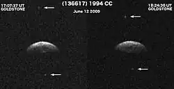 - ^ a b c d Brozovic, M.; Benner, L. A. M.; Nolan, M. C.; Howell, E. S.; Magri, C.; Giorgini, J. D.; et al. (June 2009). "(136617) 1994 CC". IAU Circ. (9053). Bibcode:2009IAUC.9053....2B. Retrieved 22 March 2017.