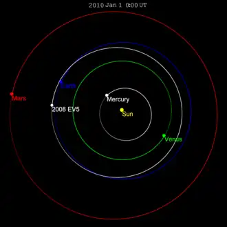 ![]() Diagram of 2008 EV5's Earth-crossing orbit | |