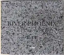 Two cover art variants exist - the first one, a mockup of Phoenix' tombstone, was rushed to the market after the song's success on radio. A second variant, featuring an image of various drug pills and the hook, "I'm on the drug that killed River Phoenix", was released shortly after.