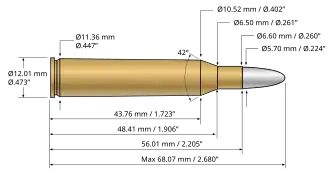 | Bullet diameter | .224 in (5.7 mm) | |||||||||||||||||||